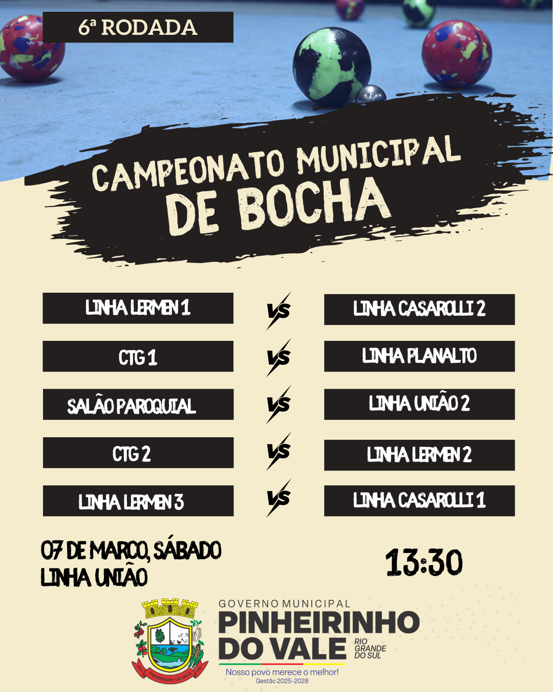 6ª rodada do Campeonato Municipal de Bocha acontece neste sábado O Campeonato Municipal de Bocha de Pinheirinho do Vale segue movimentando as comunidades do município.