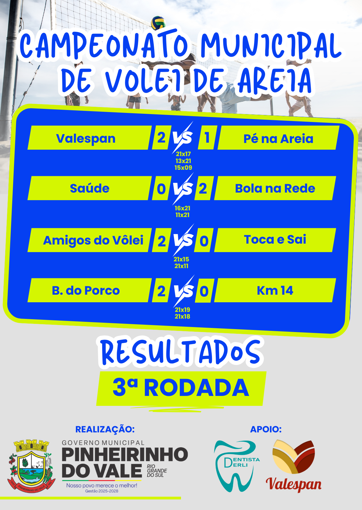 Resultados da 3ª rodada do Campeonato Municipal de Vôlei! Jogos pegados, muita vibração em quadra e aquele espírito