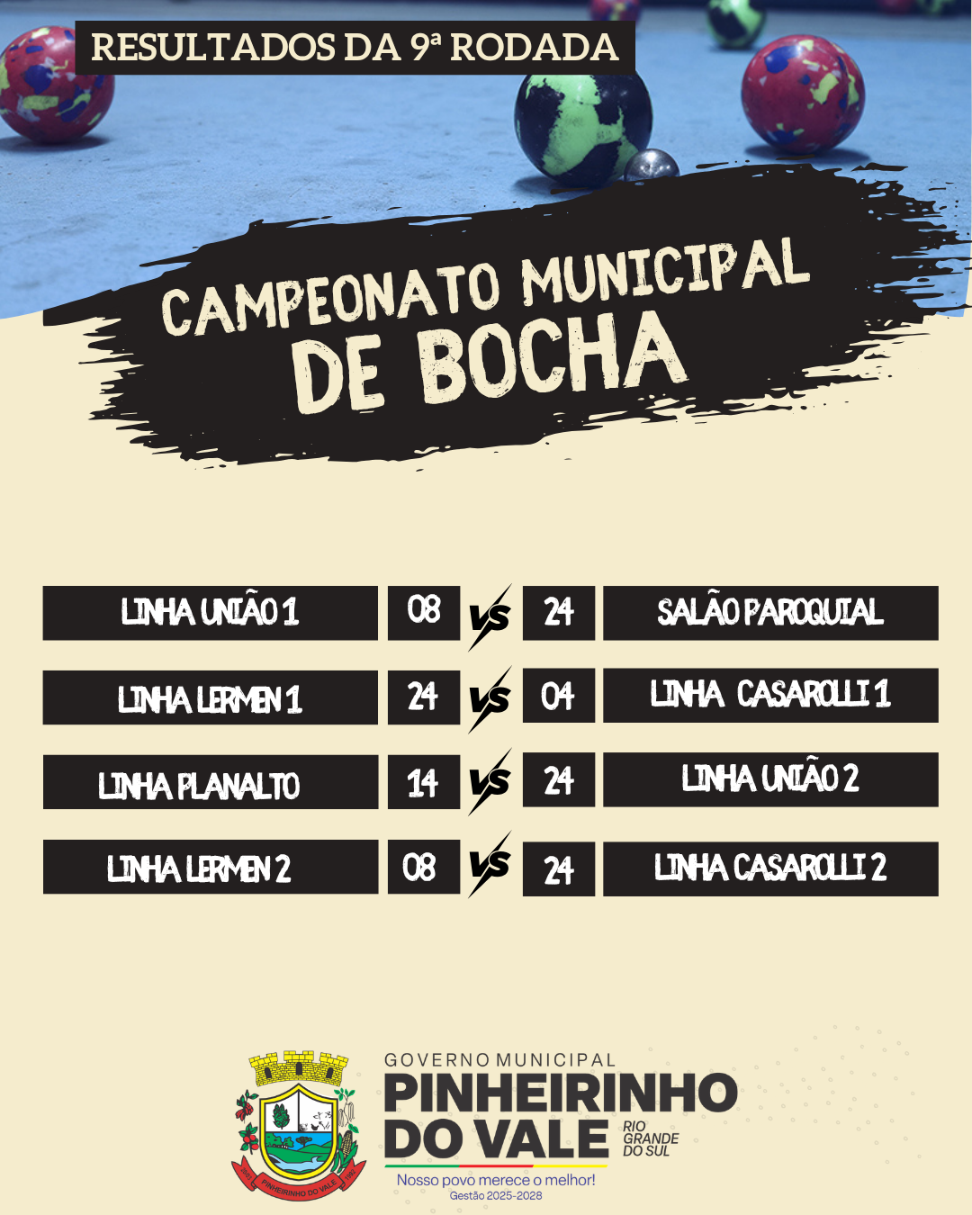 Nona rodada do Campeonato Municipal de Bochas mantém alto nível da competição A nona rodada do Campeonato Municipal de Bochas foi marcada por confrontos equilibrados