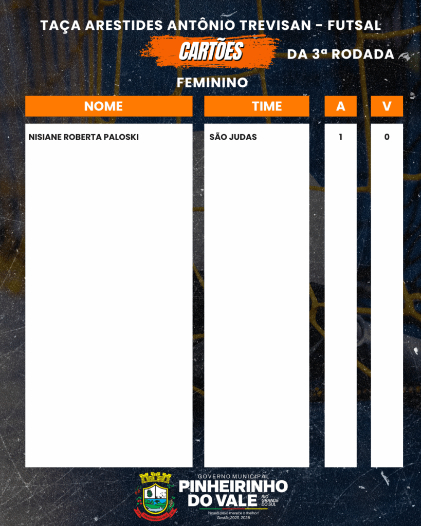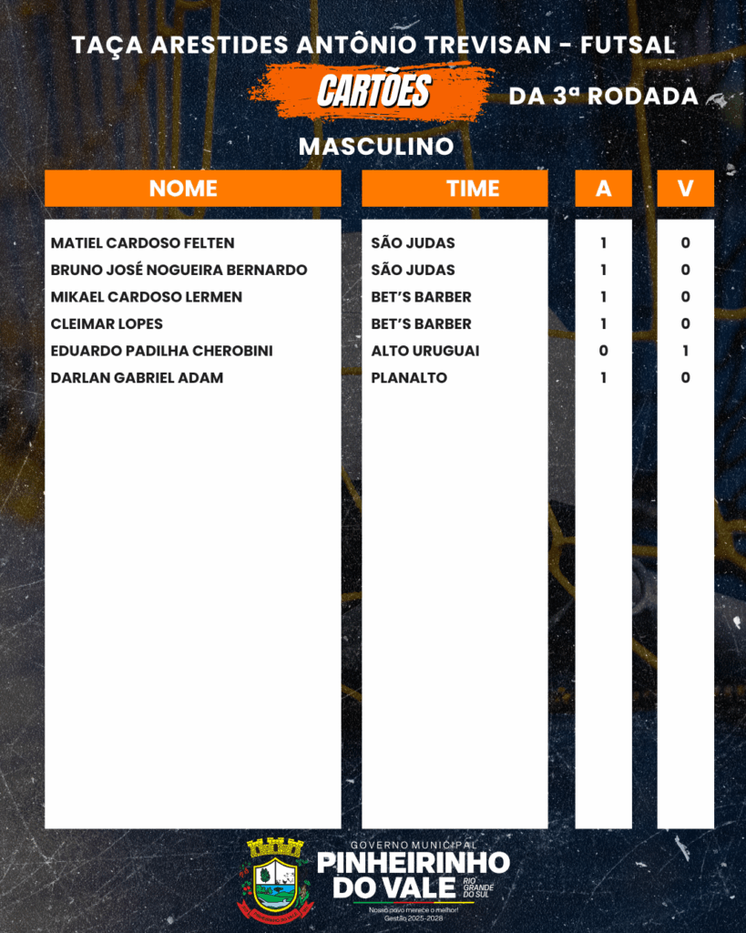 Resultados da 3ª rodada do Campeonato Municipal de Futsal – Taça Arestides Antônio Trevisan