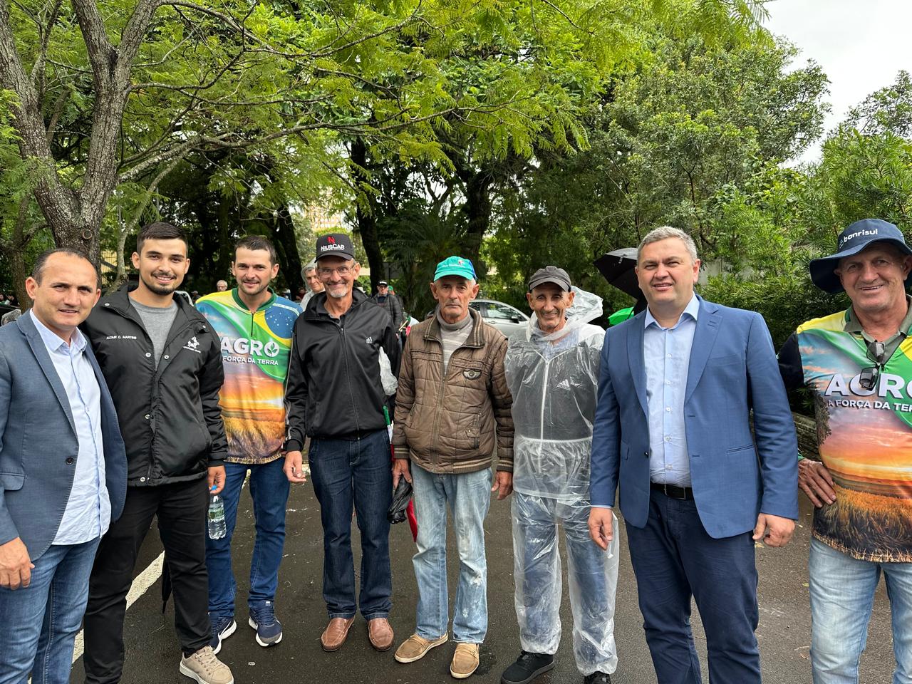 Produtores rurais de Pinheirinho do Vale também participam do ato, acompanhados pelo presidente do Sindicato dos Produtores Rurais, Sérgio Fussinger. A presença das lideranças municipais reforça o apoio do Executivo às demandas do setor agrícola, que enfrenta uma crise significativa em diversas áreas.