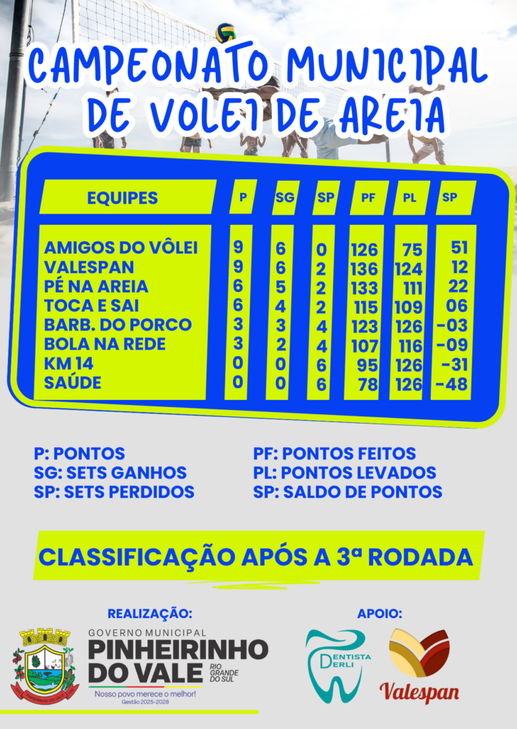 Resultados da 3ª rodada do Campeonato Municipal de Vôlei!