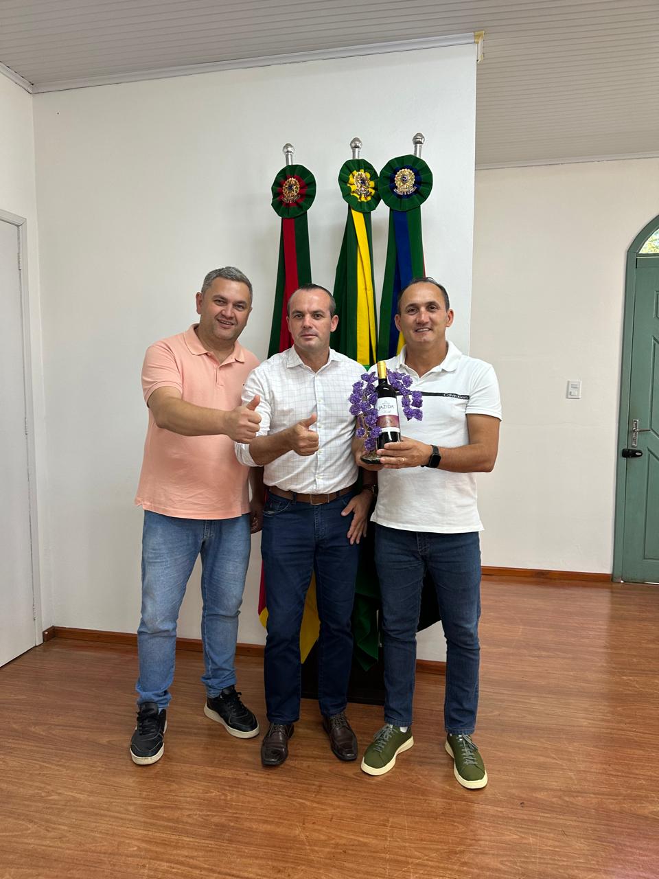Prefeito Elton Tatto e vice-prefeito Ulisser Britz recebem visita do prefeito de Ametista do Sul