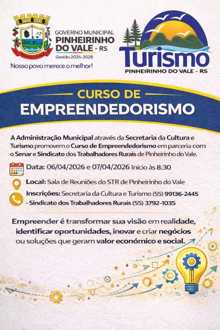 Curso de Empreendedorismo será realizado em Pinheirinho do Vale A
